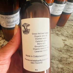 Tallow is deeply hydrating and contains vitamins A,D,E,K along with being packed full of minerals and Fatty Acids. Tallow matches the make=up of our skin creating a very unique moisturizer that soothes and helps protect the skin barrier and is completely toxin free!